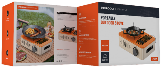 Porodo Lifestyle Portable Outdoor Stove - Orange/Beige