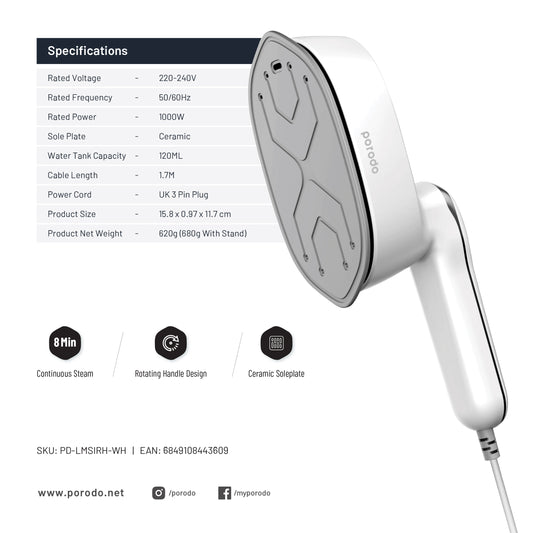 Porodo Lifestyle Handheld Garment Steamer 1700W