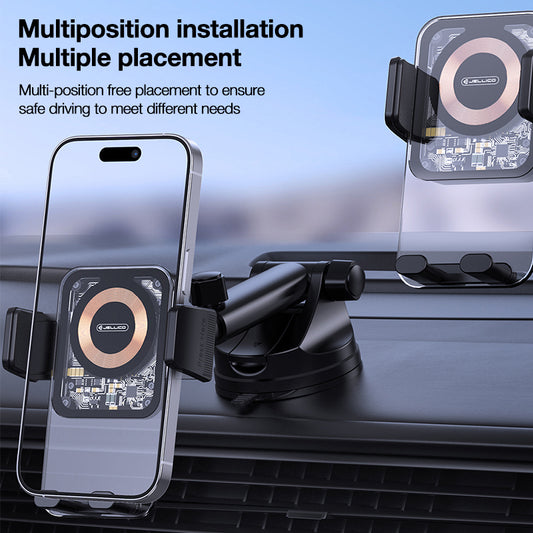 Car Wireless Charging Suction Cup, Magnetic Wireless Charging Car, 15W Wireless Car Charger for Dashboard 360° Adjustable Strong Suction Cups Compatible with Iphone 15/14/13/12 Series