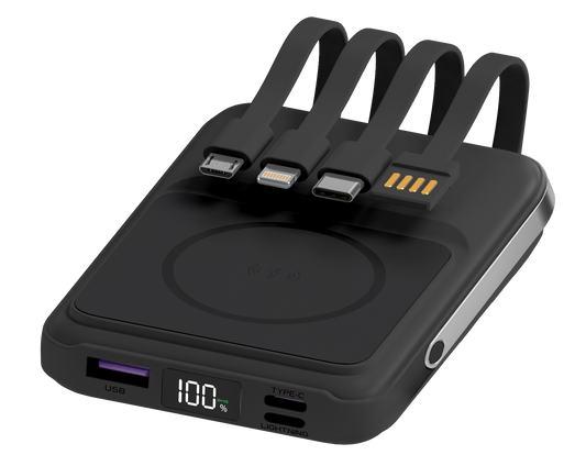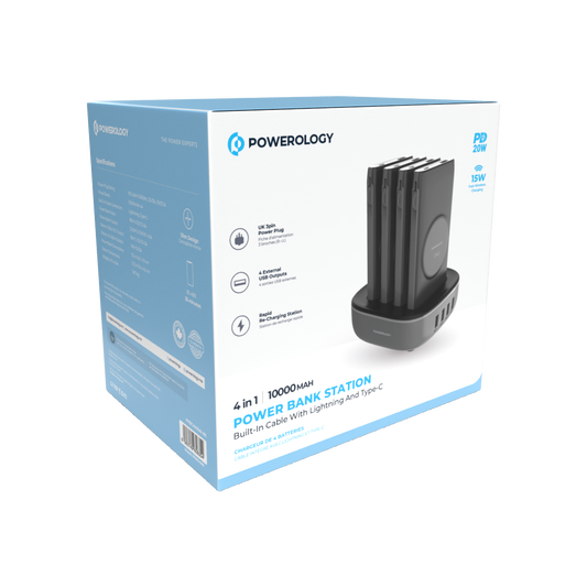 Powerology 4in1 Station 10000mAh 20W PD QC Wireless Power Bank Built-in Cable With Lightning And Type-C