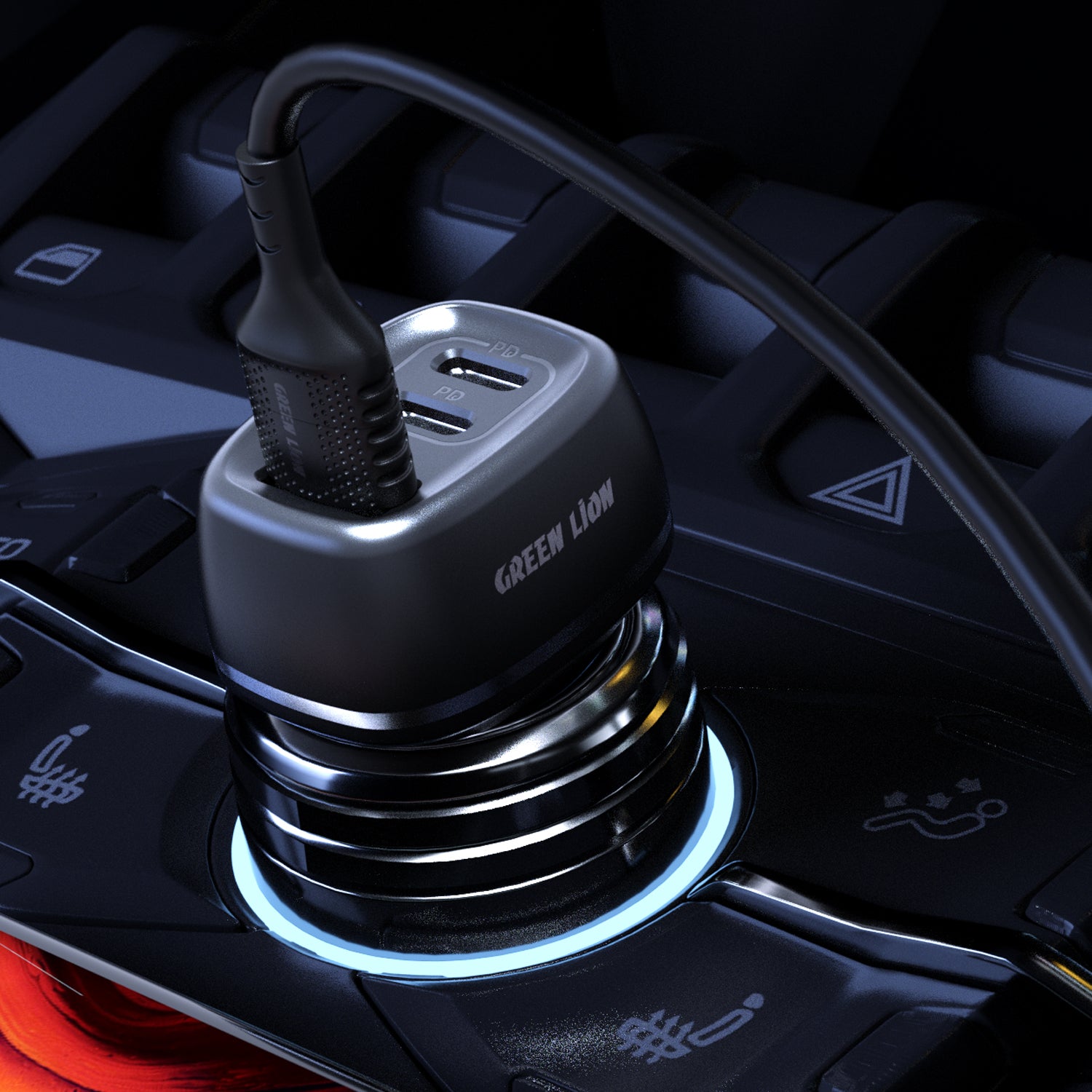 Green Lion's Car Charger QC+PD 50W with 2 PDs and quick charging and heat protection features